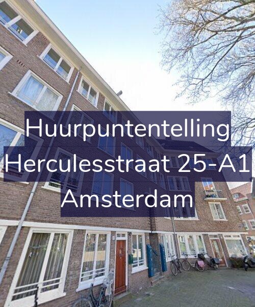 Deze woning aan de Herculesstraat 25-A1 in Amsterdam heeft volgens onze rapportage tussen de 157 en 170 huurpunten [1] per 1 januari 2025 en valt daarmee in het gereguleerde segment en heeft een huurprijs tot € 1.132,79 [2].