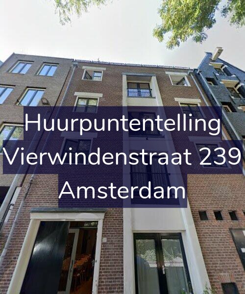 Voor deze woning aan de Vierwindenstraat 239 hebben wij een puntentelling rapportage gemaakt die een indicatie van de huurpijs aangeeft volgens het huidige woningwaarderingsstelsel (WWS) met middenhuur huurprijsregulering.